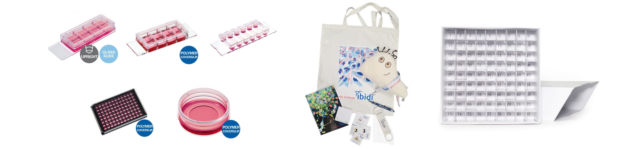 ご希望のibidi細胞観察容器1点 + ibidiサプライズBox + FG 紙製 81穴スライドフリーズボックス(10点)