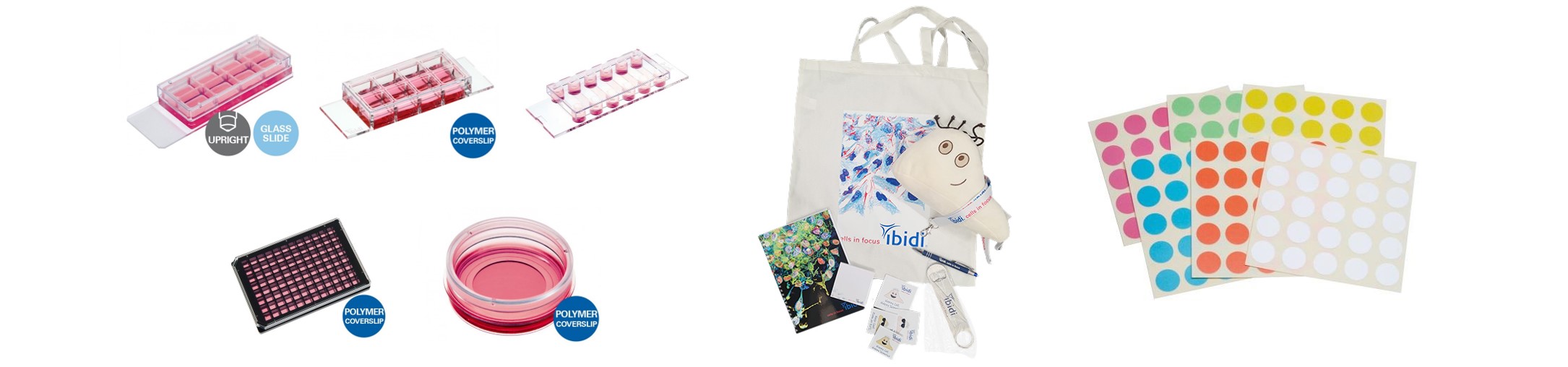 ご希望のibidi細胞観察容器1点 + ibidiサプライズBox + FG チューブトップ用丸ラベル 10φ アソート(各色25枚x8シート)