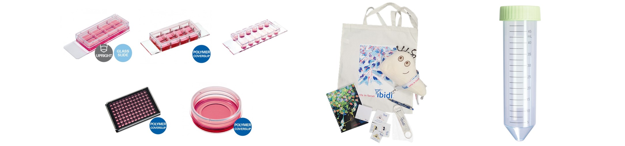 ご希望のibidi細胞観察容器1点 + ibidiサプライズBox + FG 遠心チューブ 50 mL(500本)