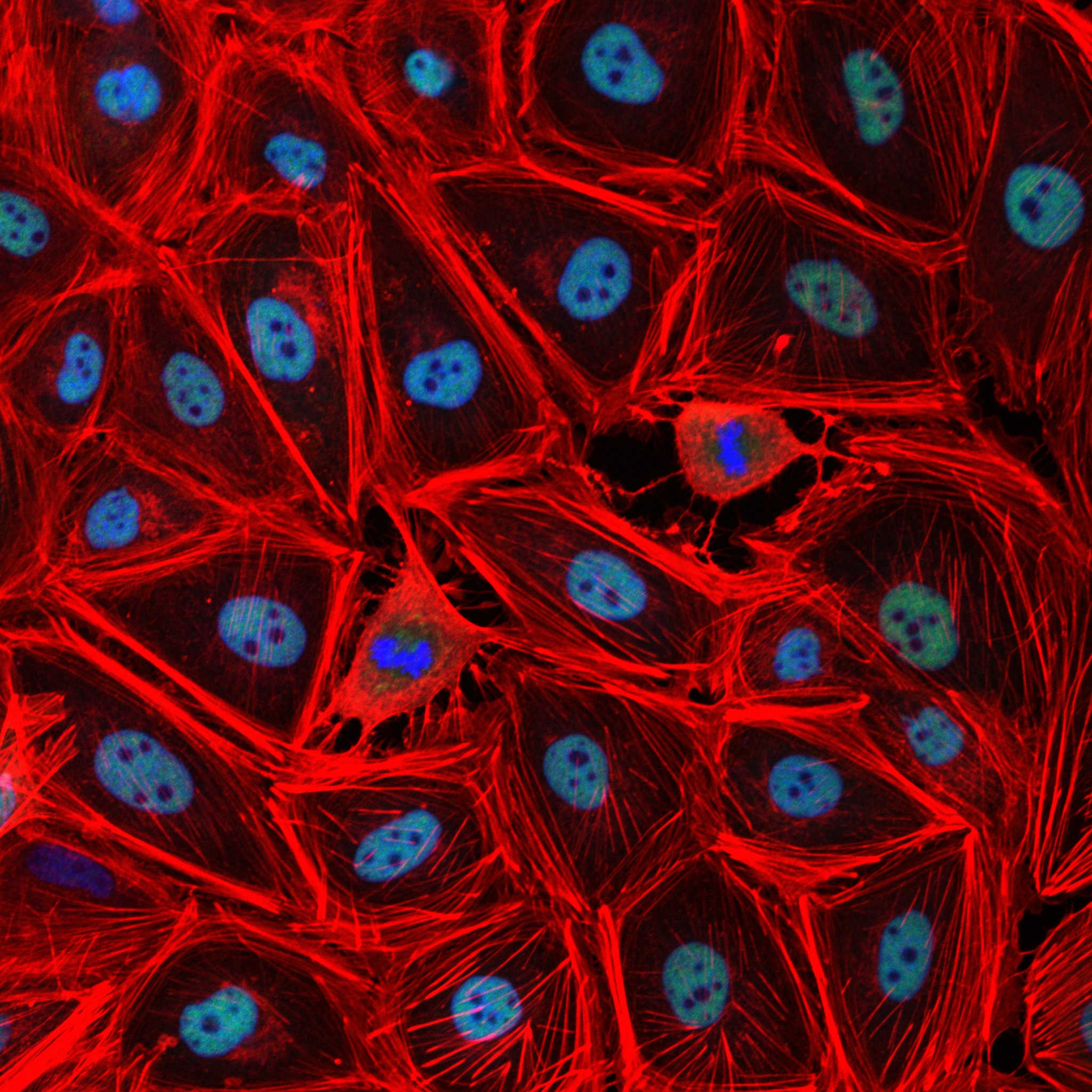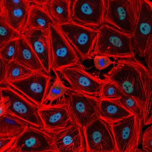作品タイトル:ヒト中皮細胞の蛍光顕微鏡撮影