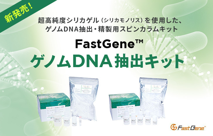 製品・サービス 【新発売】超高純度シリカゲルを使用した FastGene™ ゲノムDNA抽出キット2022.06.24超高純度シリカゲル(シリカモノリス)を使ったスピンカラムキットで、短時間・簡単にゲノムDNA抽出! FastGene™ より、培養細胞、口腔粘膜細胞、植物細胞サンプル及び動物組織からゲノムDNAの抽出・精製を行うスピンカ...