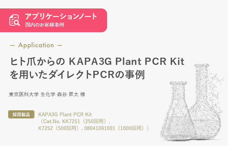 アプリケーションノート日本ジェネティクスのアプリケーションノートとは? 当社製品を実際にご使用頂いた、正真正銘、日本国内の研究者様による評価データ 製品をご検討中の方はもちろん、採用後であっても類似の研究をされている他の研究者の方の事例集とし...